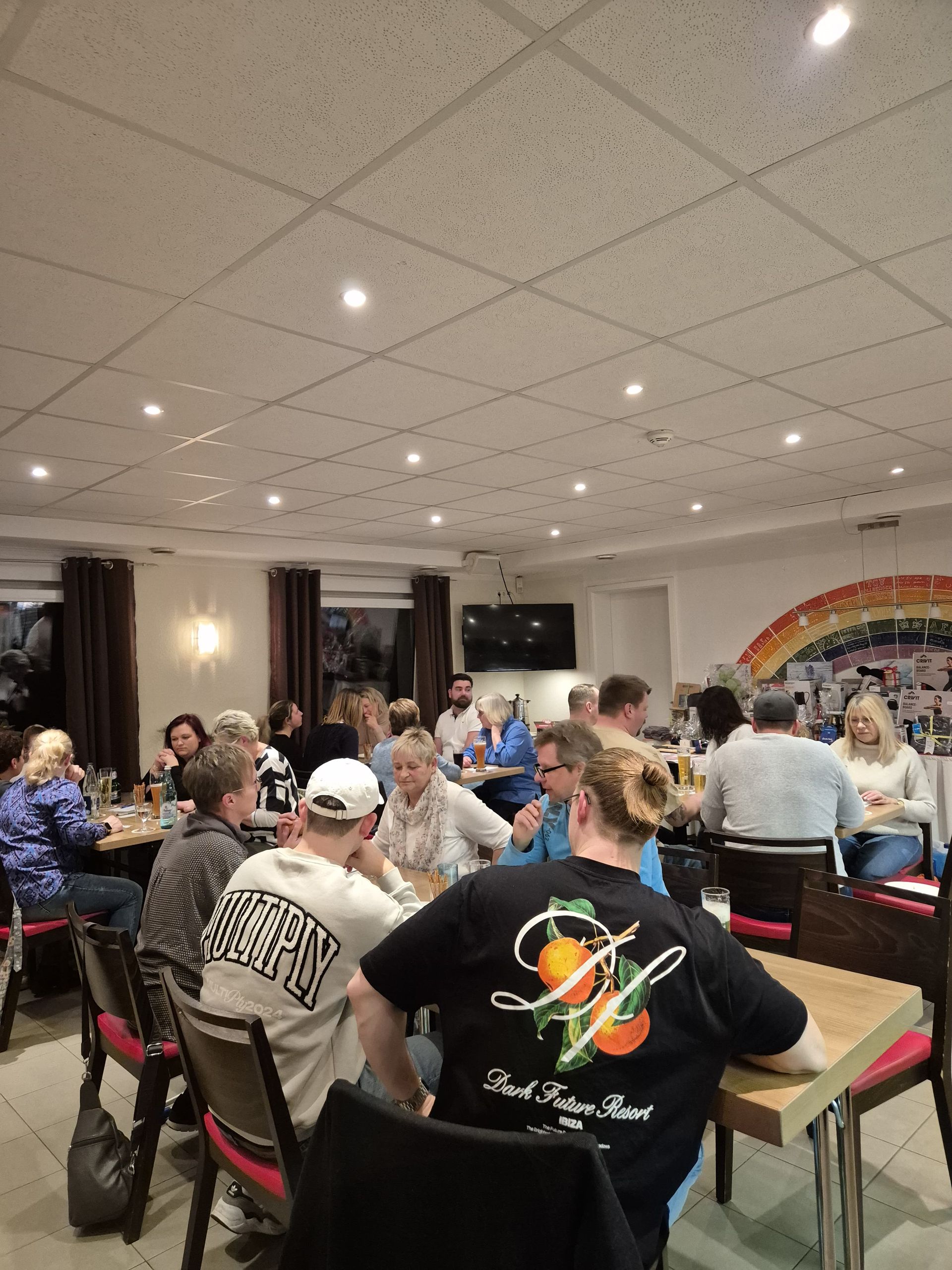 Bereits zu Beginn des Abends war die Atmosphäre im Sportheim entspannt und freundschaftlich. Die Teilnehmer wurden in kleinen Gruppen zusammengesetzt, um in mehreren Runden ihre Würfelfähigkeiten unter Beweis zu stellen. Doch bei diesem Turnier ging es nicht nur um den Sieg, sondern auch um das Miteinander und die Freude am Spiel. Die Teilnehmer fanden schnell ihren Platz, lachten, fachsimpelten und versuchten, ihre Mitstreiter mit den besten Würfen zu überlisten. Natürlich gab es an vielen Tischen wieder eine Ouzo-Runde wenn ein Kniffel gewürfelt wurde.