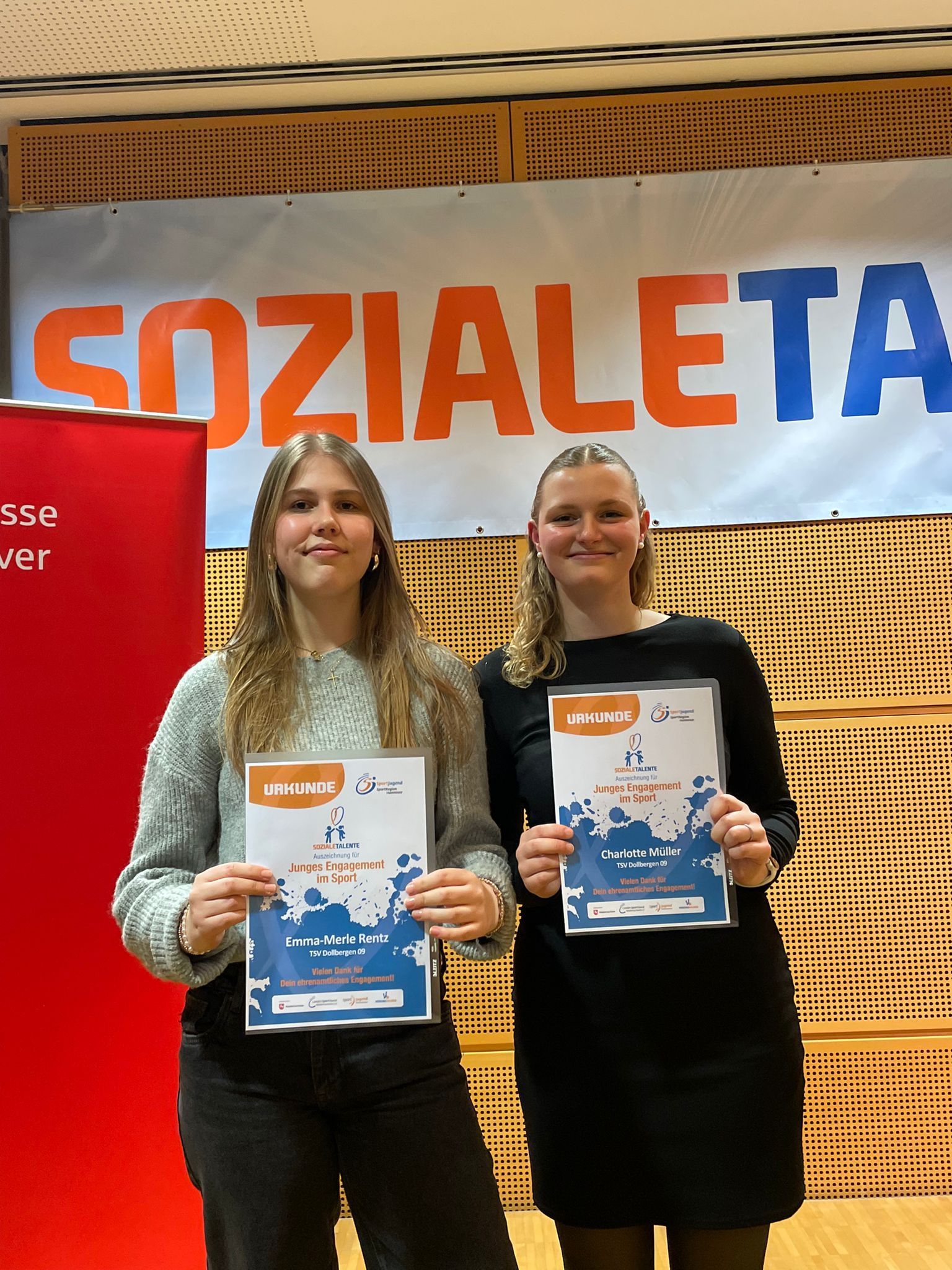 Aus unserem Verein wurden Emma Rentz und Charlotte Müller nominiert und an diesem Abend für ihr viefältiges Engagement geehrt. Herzlichen Glückwunsch dafür.